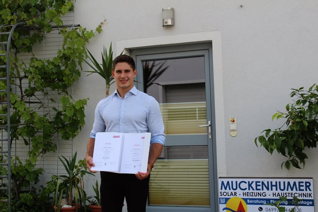 Nach dem Gas-Sanitär Meister im letzten Jahr hat Rafael Muckenhumer auch den Meister in Heizungstechnik mit Auszeichnung bestanden!
